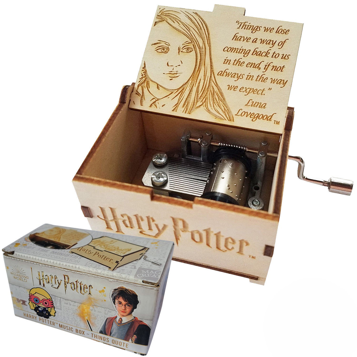 Turn the knob and let the magical Harry Potter song "Hedwig's Theme" take you to the halls of Hogwarts, where adventures await and friendships never fade. Perfectly sized to fit anywhere, this music box is a must-have for diehard fans of the Wizarding World.